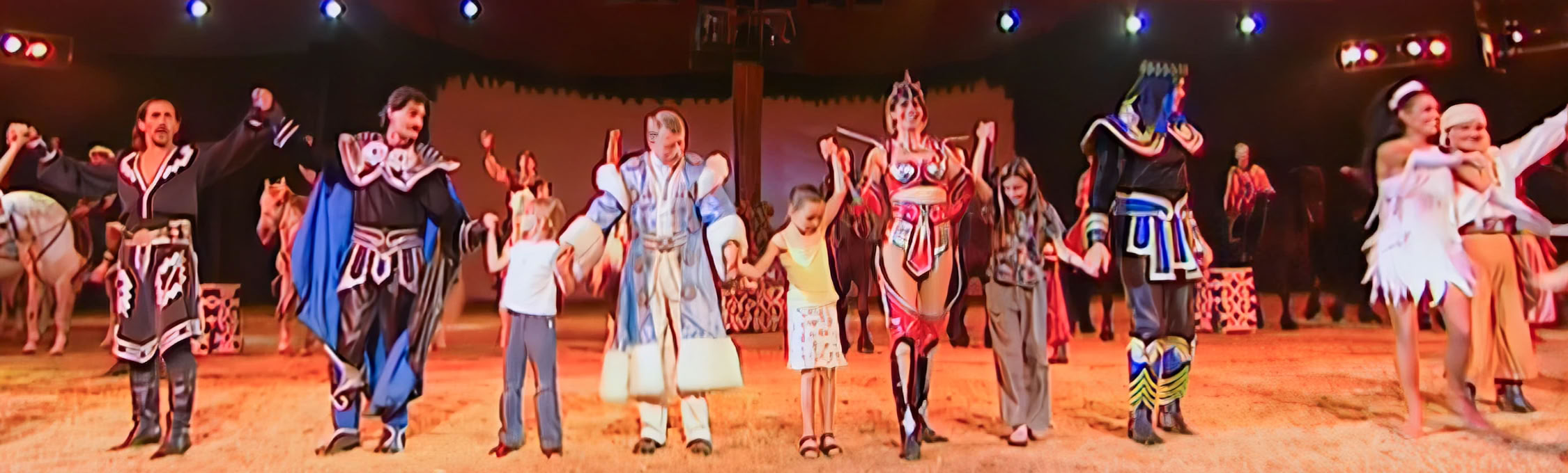 Die im Show-Business einzigartige Symbiose aus Zirkus, Pferdeshow und Musical, die Kombination aus hoher Reitkunst, Artistik und Schauspiel. Märchen und Kino: Das macht den Zauberwald mit seiner bislang unübertroffenen Inszenierung aus.
