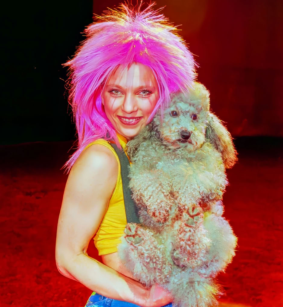 Das ist aber nur ein Teil ihres vielseitigen künstlerischen Repertoires. Zum Programm der tänzerisch ausgebildeten Artistin gehört auch die spielerische Hundedressur.