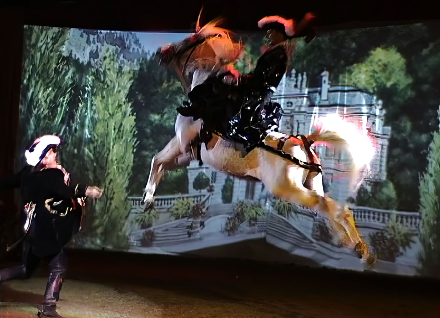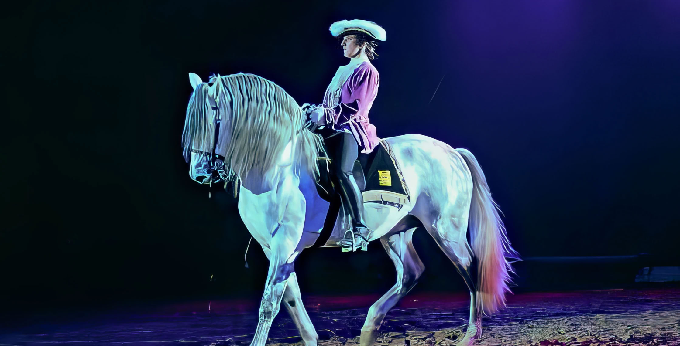 Bei den beiden Franzosen bekommen die Pferde der Show den klassischen barocken Schliff: Kapriolen. Sprünge über der Erde. Steigen im Damensattel und alle anderen Übungen. die zur klassischen Ausbildung gehören