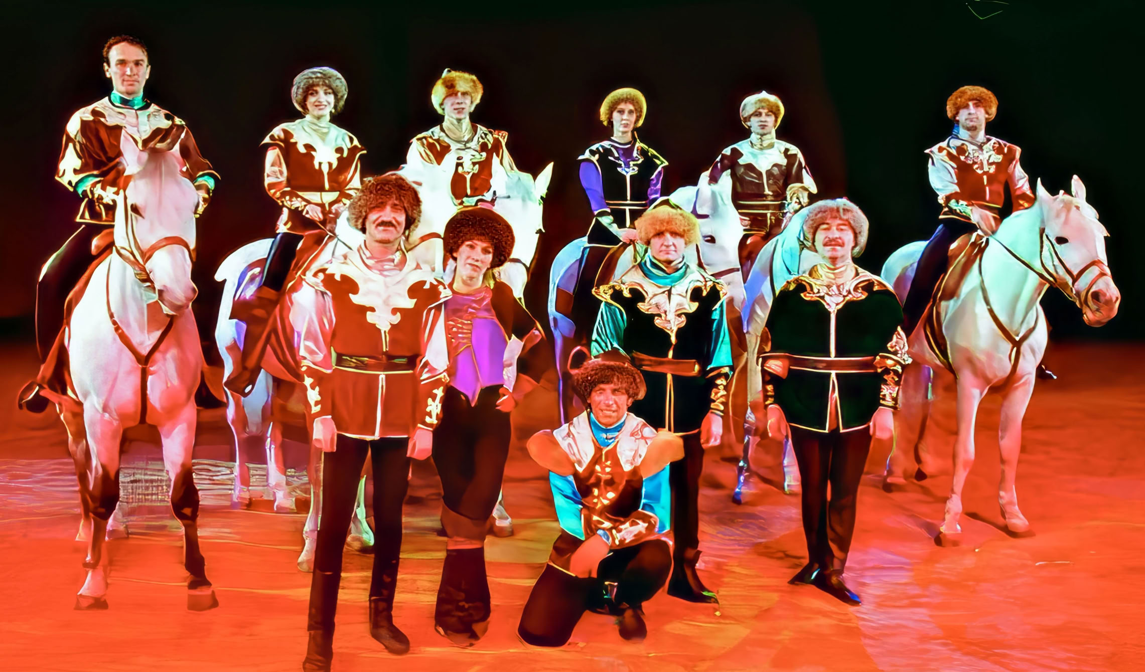 Als Kosakenreiter in traditionellen Kostümen fliegen sie auf ihren Pferden regelrecht durch die Szene. Die Pliev-Truppe zählt zu den gefragtesten Trickreitern überhaupt. Schon seit vielen Generationen ist diese waghalsig aussehende Dschigitenreiterei ihre Profession. Was sie besonders auszeichnet ist Exaktheit und Wagemut. Auf ihren durchtrainierten Pferden zeigen sie perfekte Akrobatik. Absolutes Vertrauen zwischen Mensch und Tier sind dabei eine unabdingbare Voraussetzung für ihre beeindruckende, temporeiche Darbietung.